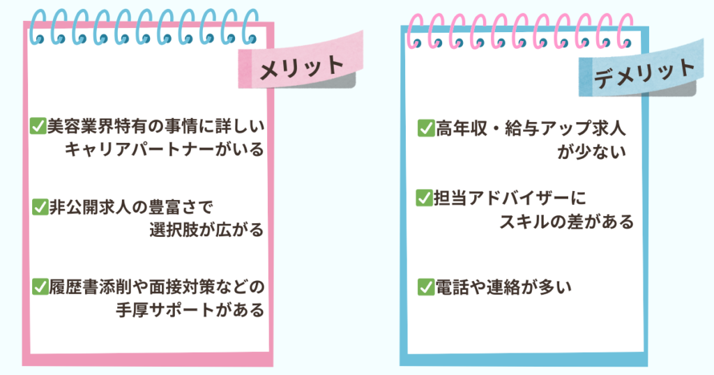 良かった点としては美容業界に詳しいキャリアアドバイザーが自分の希望や状況に合わせたきめ細やかなサポートをしてくれたり、豊富な求人情報を提供をしてくれることです。